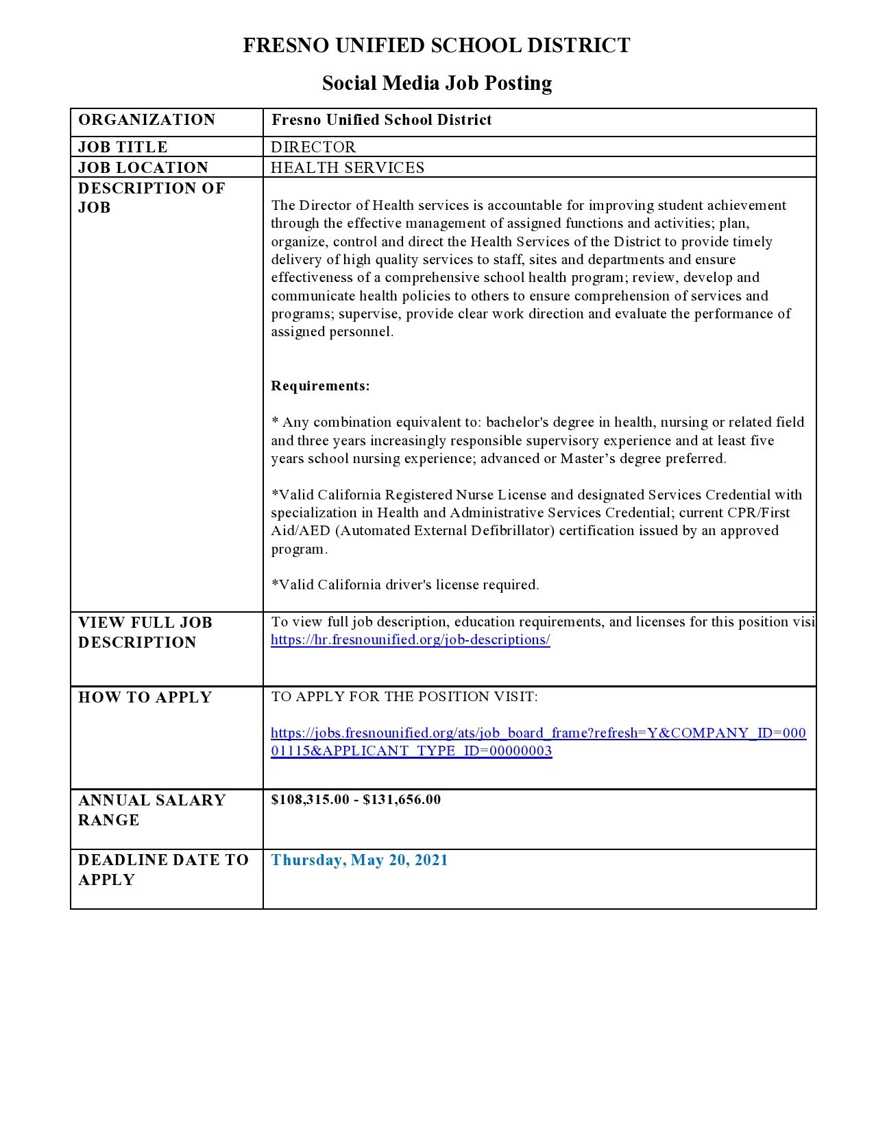 Salary Schedules Fresno Unified Human Resources